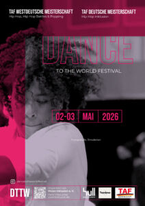 Das „Dance to the World Festival“ geht in die sechste Runde und bringt vom 02. bis 03. Mai 2026 die Tanzszene nach Emsdetten! Zwei Tage voller Energie, Leidenschaft und Vielfalt erwarten euch in der Euregio Sporthalle – mit mitreißenden Performances, packenden Meisterschaften und einer einzigartigen Gemeinschaft.